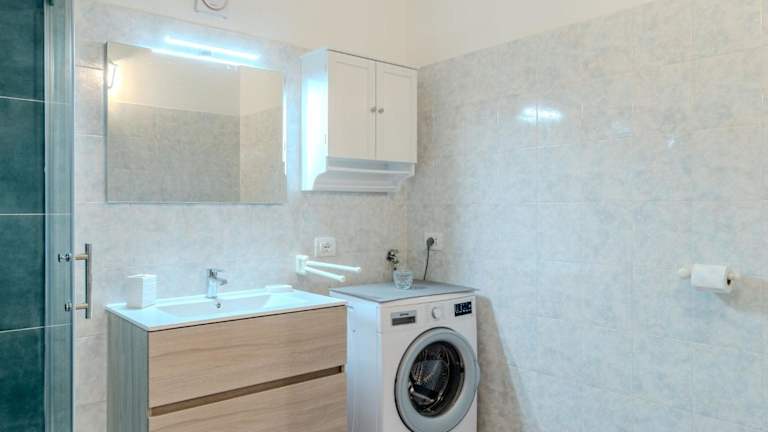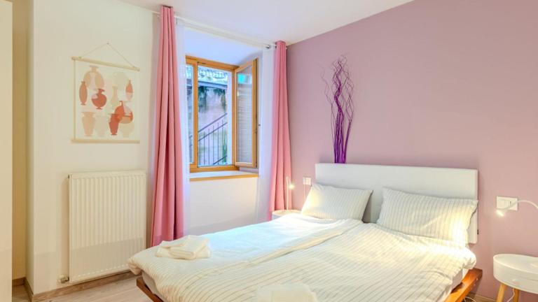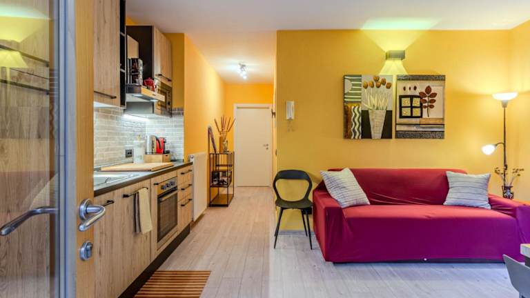 Die Ferienwohnung bietet ein Schlafzimmer, ein Wohnzimmer mit TV und eine gut ausgestattete Küche, die mit einem Kühlschrank und einem Geschirrspüler ausgestattet ist. Zudem steht ein Badezimmer mit Bidet zur Verfügung.