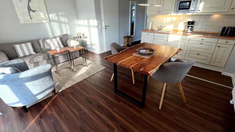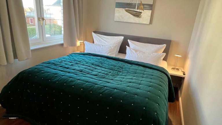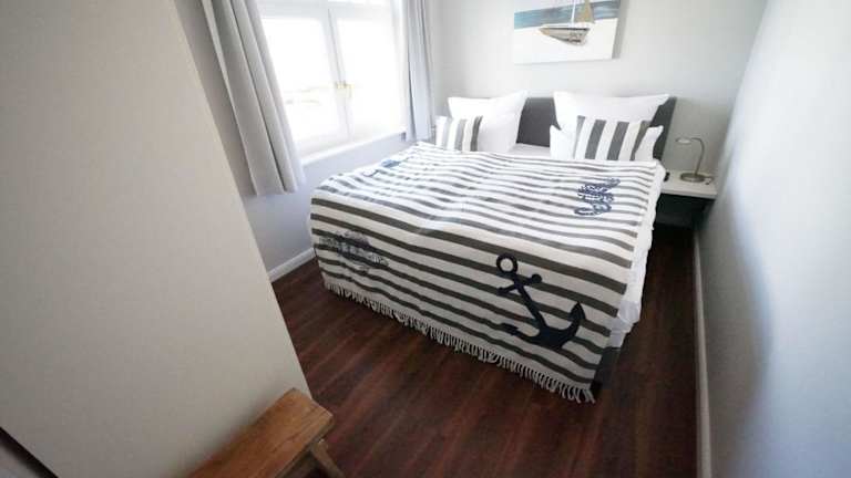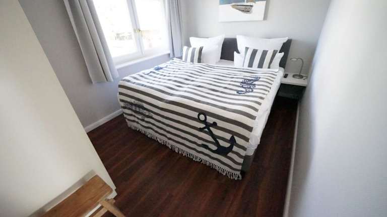 Die Ferienwohnung umfasst 1 Schlafzimmer sowie ein Badezimmer mit Badewanne oder Dusche. Zur Ausstattung gehört eine Küchenzeile mit Kühlschrank und Geschirrspüler.