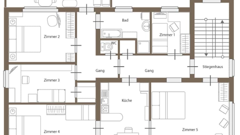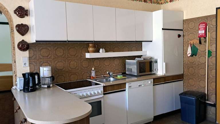Die Ferienwohnung verfügt über 5 Schlafzimmer, eine gut ausgestattete Küche mit Kühlschrank und Geschirrspüler sowie ein Badezimmer mit Dusche und Badewanne. Handtücher und Bettwäsche werden zur Verfügung gestellt.