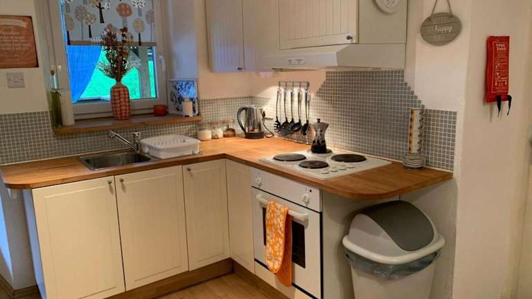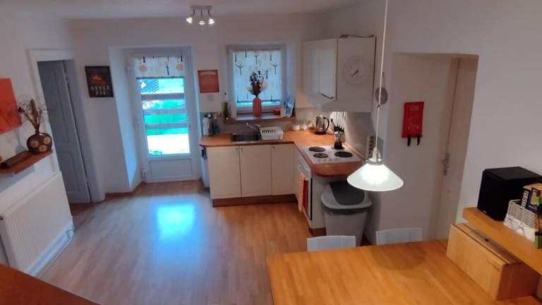 Die Ferienwohnung verfügt über 2 Schlafzimmer, ein Wohnzimmer mit TV, eine gut ausgestattete Küche mit Kühlschrank und Ofen sowie 1 Badezimmer mit Dusche. Handtücher und Bettwäsche sind ebenfalls vorhanden.