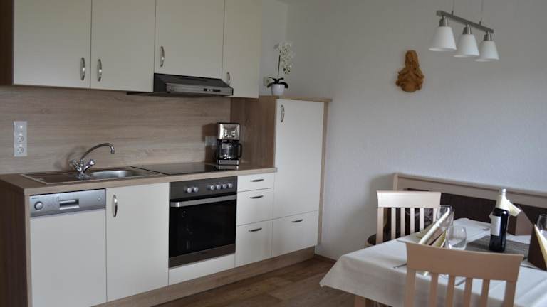 Die Ferienwohnung verfügt über ein Schlafzimmer, ein Wohnzimmer, einen Flachbild-TV sowie eine gut ausgestattete Küche mit Kühlschrank und Geschirrspüler. Das Badezimmer ist mit einer Dusche ausgestattet. Handtücher und Bettwäsche werden ebenfalls bereitgestellt.