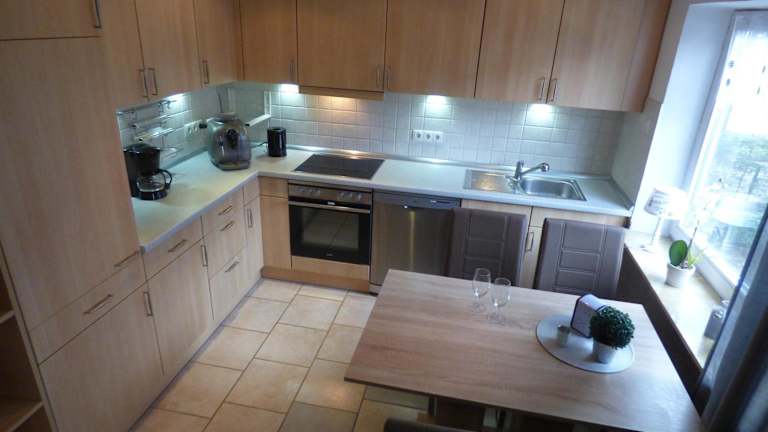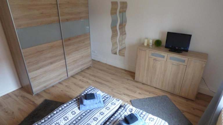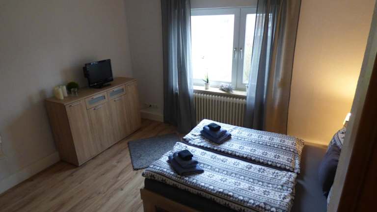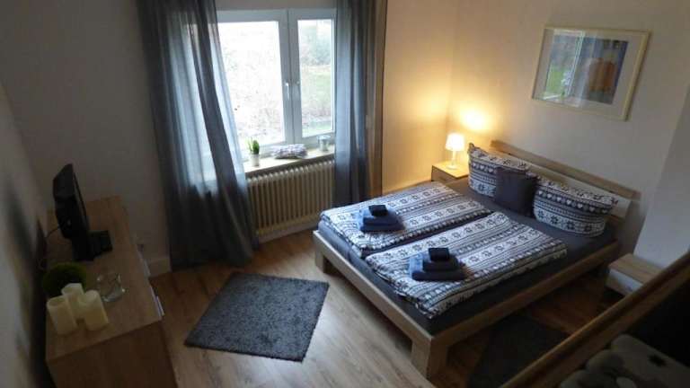 Die Ferienwohnung besteht aus einem Schlafzimmer, einem Wohnzimmer sowie einer voll ausgestatteten Küche mit einem Kühlschrank und einer Kaffeemaschine. Zudem stehen zwei Badezimmer mit Badewanne oder Dusche zur Verfügung. Handtücher und Bettwäsche werden bereitgestellt.