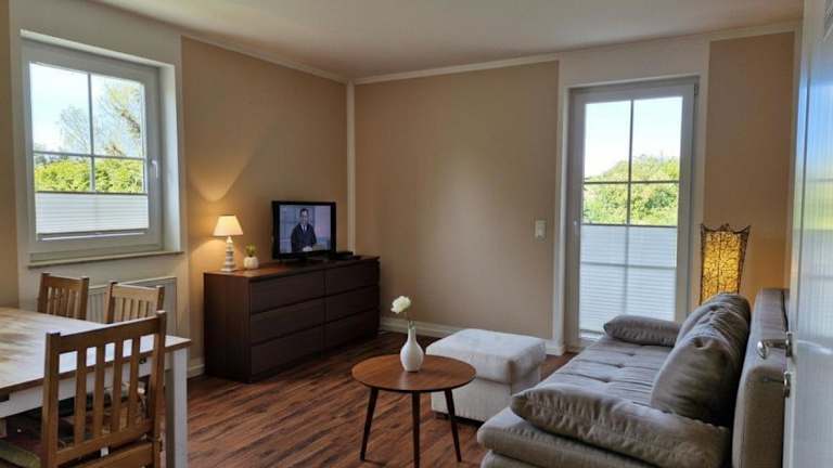 Das Apartmenthaus Ostseeluft bietet elegant möblierte Zimmer und Apartments im gemütlichen Landhausstil. Die Zimmer verfügen über Holzböden, die eine warme und einladende Atmosphäre schaffen. Zur Ausstattung gehören auch ein TV und ein modernes Badezimmer mit Fußbodenheizung, das Ihnen höchsten Komfort bietet. Die Apartments bieten zusätzlich einen Balkon oder eine Gartenterrasse, auf der Sie die frische Luft und die idyllische Umgebung genießen können.