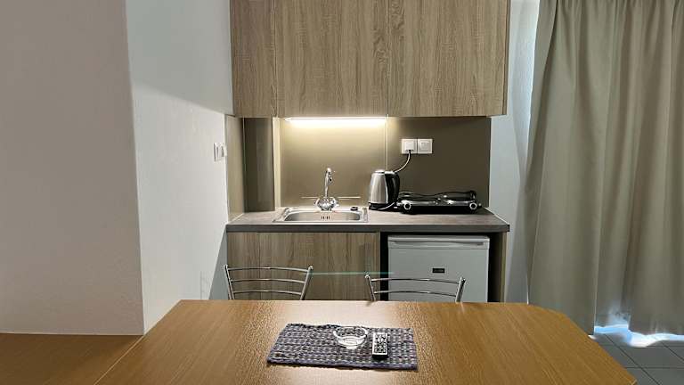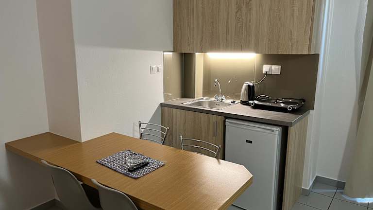 In den Zimmern sind Klimaanlage, Heizung, ein Balkon, ein Doppelbett oder Sofabett vorhanden. Die Kochnische ist mit einem Kühlschrank und einer Tee-/Kaffeemaschine ausgestattet. Zu den weiteren Annehmlichkeiten zählen ein Safe, eine Minibar, ein Schreibtisch und moderne Unterhaltungsmöglichkeiten wie ein TV-Gerät mit Satellitenempfang und Wifi. Die Badezimmer sind mit Dusche, Badewanne und Bidet ausgestattet und bieten Kosmetikartikel.