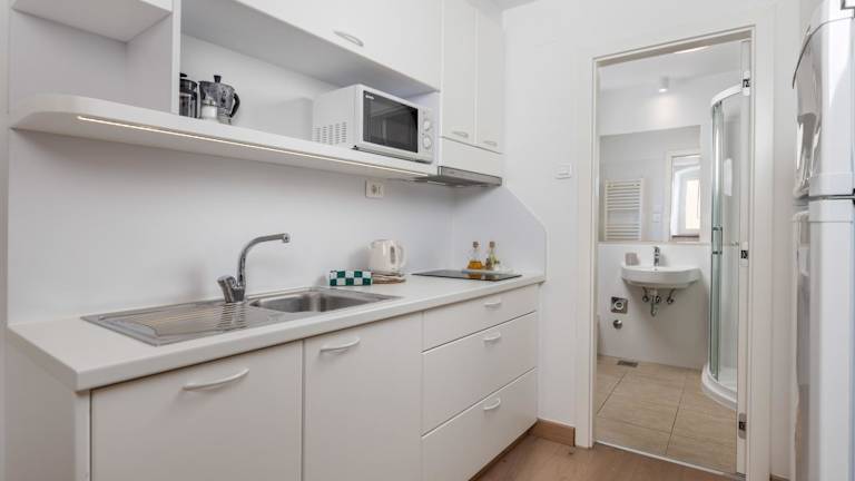 Die Wohneinheiten sind mit einer voll ausgestatteten Küche ausgestattet, die über einen Kühlschrank, eine Mikrowelle, eine Herdplatte und einen Wasserkocher verfügt. Zudem gibt es eine Kaffeemaschine. Es werden keine spezifischen Verpflegungsmöglichkeiten erwähnt.