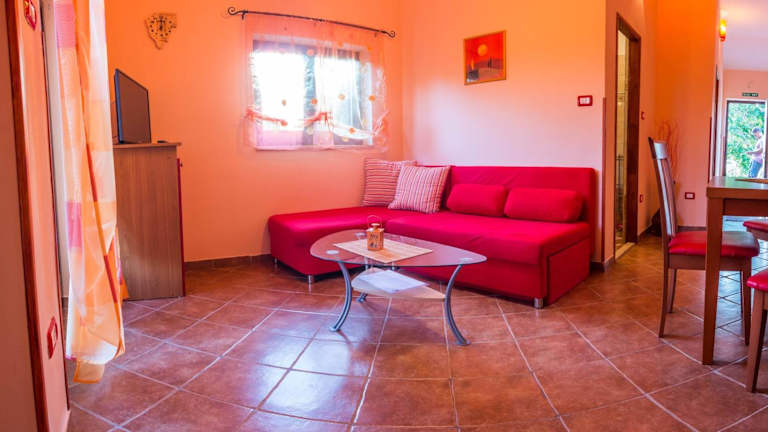 Die Apartments Angela 1711 in Rakalj, Istrien, bieten komfortable Unterkünfte mit kostenfreiem WLAN und Privatparkplätzen. Entspannen Sie im Whirlpool und genießen Sie die Nähe zu den Stränden Kalavojna und Luka. Die Apartments sind mit einer Terrasse, einem Sitzbereich, Sat-TV und einer voll ausgestatteten Küche ausgestattet. Der Garten der Unterkunft lädt zum Verweilen ein. Erkunden Sie die Umgebung mit dem nahegelegenen Strand Provaza und dem Amphitheater Pula.