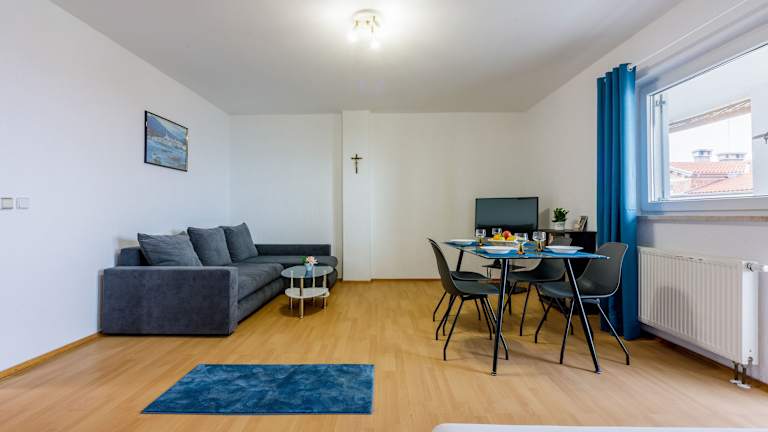 Apartments ANITA bietet komfortable und klimatisierte Wohneinheiten, die mit einer voll ausgestatteten Küchenzeile ausgestattet sind. Zu den Annehmlichkeiten gehören Kühlschrank, Kaffeemaschine und Mikrowelle. Alle Wohnungen verfügen zudem über einen Balkon mit Aussicht auf das Meer. Die Unterkunft ist eine Nichtraucherunterkunft und es sind keine Haustiere gestattet. Junggesellen-/Junggesellinnenabschiede sind nicht erlaubt. Es besteht eine Mindestaltergrenze für den Check-in von 18 Jahren.