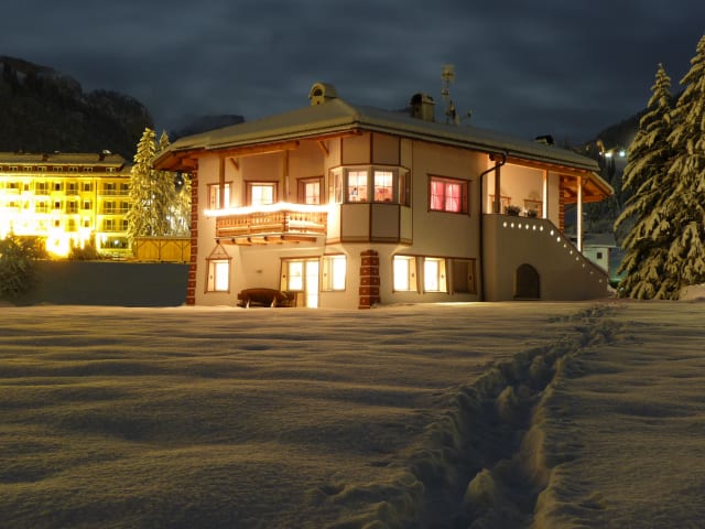 In unmittelbarer Nähe befindet sich alles, was ein Urlauber benötigt: vom Supermarkt bis zum Restaurant, das Informationsbüro oder Postamt, von den Souvenirläden bis zum Skiverleih. Sie können den Wagen in unserer kostenlosen Garage lassen. Kostenlose Nutzung aller Linienbusse im Tal (im Winter auch der Skibusse). Sessellift Monte Pana in nächster Nähe (im Winter Einstieg in die SellaRonda, im Sommer ein Naherholungsgebiet für Familien)