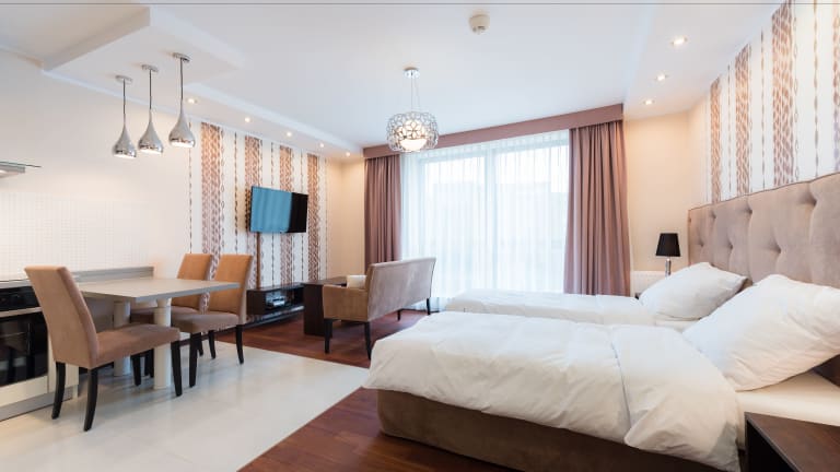 Die Zimmer sind mit einer Küche und einem Badezimmer ausgestattet. Zur Ausstattung gehört eine Heizung für das richtige Raumklima. Der Balkon ist Standard in den meisten Zimmern und bietet Platz für Erholung. Die Zimmer verfügen über ein Doppelbett und ein Sofabett. In der Kochnische finden Sie eine Mikrowelle sowie einen Backofen. Zudem sorgen ein TV-Gerät und kostenfreies Wifi für vielfältige Kommunikations- und Unterhaltungsmöglichkeiten. Die Badezimmer sind mit einer Dusche und einer Badewanne ausgestattet und bieten Haartrockner. Es stehen Familien- und Nichtraucherzimmer zur Verfügung.