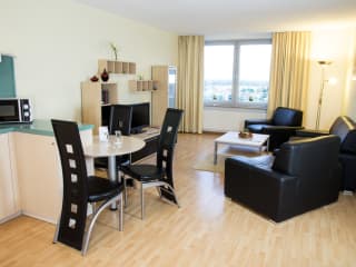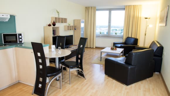 Die Apartments befinden sich in einer günstigen Lage nahe der Autobahn A38, zwischen dem Stadtzentrum und dem Neuseenland, was sowohl Geschäftsreisenden als auch Kurzurlaubern zugutekommt. Die Nähe zum Industriegebiet Wachau-Nord und dem Messegelände macht die Lage optimal für langfristige Aufenthalte.