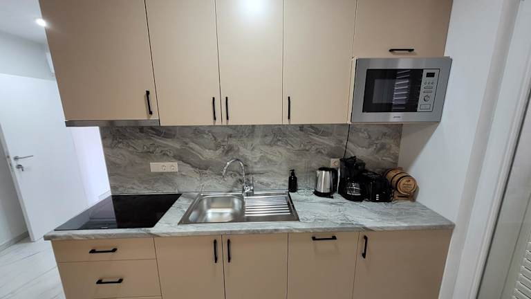 Die Wohneinheiten sind mit einem Balkon mit Blick auf den Pool, einem Satelliten-Flachbild-TV sowie einer gut ausgestatteten Küche eingerichtet. Jedes Appartement verfügt über ein eigenes Badezimmer mit einer Dusche und einem Haartrockner. Zum Inventar gehören zudem ein Kühlschrank, ein Geschirrspüler, ein Ofen, eine Kaffeemaschine und ein Wasserkocher.