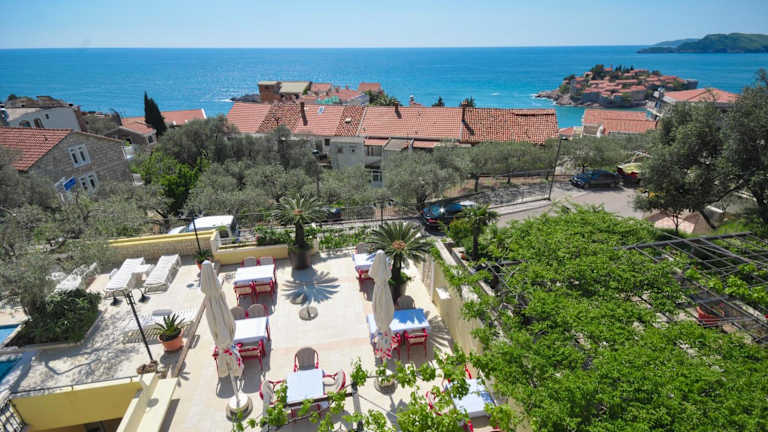 Das Hotel liegt in Sveti Stefan, ca. 5 Minuten vom Strand entfernt. Die Entfernungen betragen ca. 25 km zum Flughafen, 8 km zum Bahnhof, 400 m zum Strand und 100 m zum Stadtzentrum.