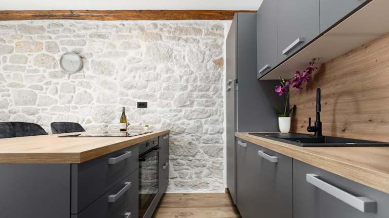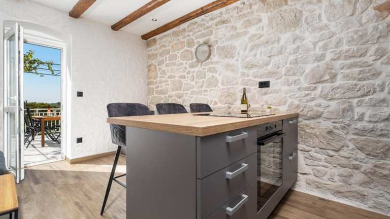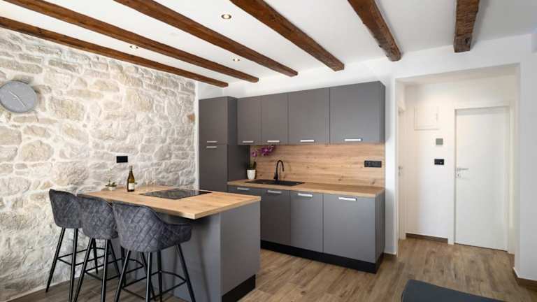 Die Wohneinheiten verfügen über eine voll ausgestattete Küche mit Herdplatte, Kühlschrank und Kaffeemaschine, die die Selbstversorgung erleichtert.