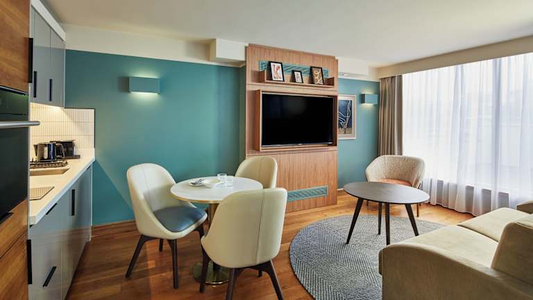 Jedes Apartment ist stilvoll und modern gestaltet. Sie verfügen über einen separaten Wohnbereich mit Holzböden, bequemen Sofas, einem Flachbild-TV mit DVD-Player und kostenloses WLAN. Die Zimmer bieten ein behagliches Raumklima durch eine Heizung sowie einen sicher verwahrten Platz für Wertsachen in einem Safe. In den Badezimmern ist ein Haartrockner vorhanden. Die Unterbringung bietet Nichtraucherzimmer.