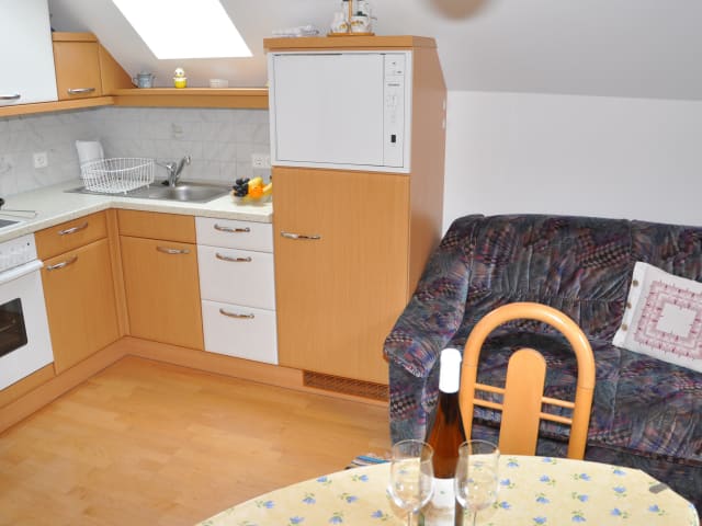 Die Wohneinheiten sind mit gut ausgestatteten Küchen inklusive Kühlschrank, Geschirrspüler, Ofen, Kaffeemaschine und Wasserkocher ausgestattet, was eine eigenständige Verpflegung ermöglicht. Guetzli oder Zopf können bei Bedarf auch selbst zubereitet werden.