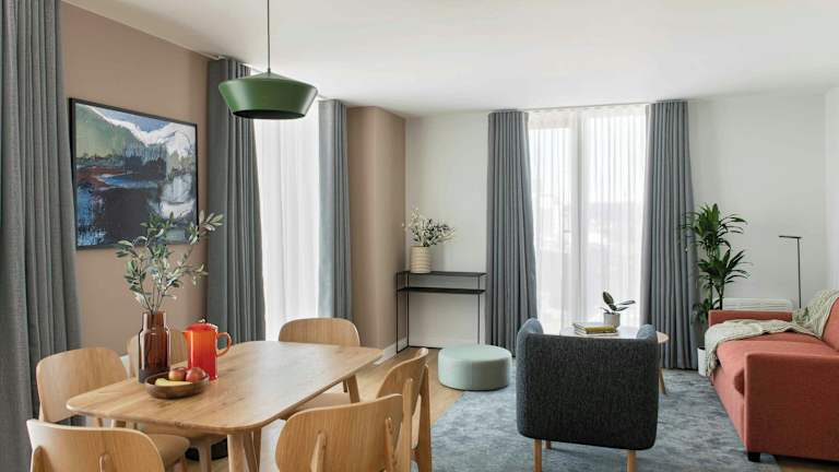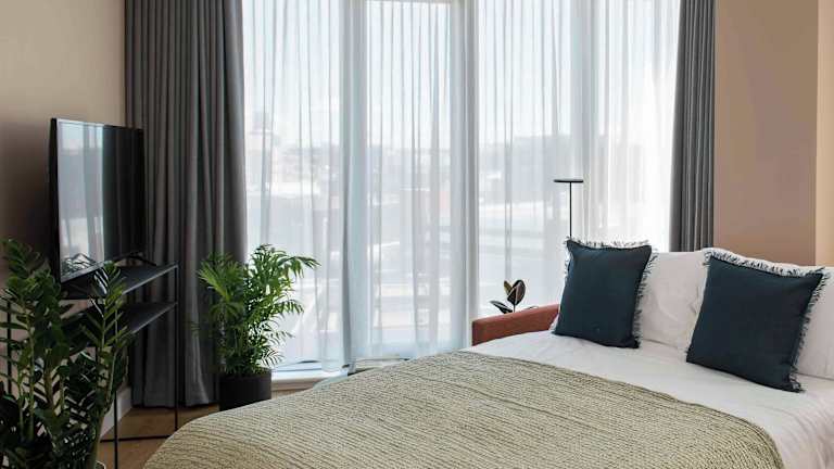 Die Apartments sind hell und modern eingerichtet, mit einem offenen Wohnbereich, Ledersofas, Flachbild-TV und DVD-Player. Jedes Apartment verfügt über eine gut ausgestattete Einbauküche mit Herd, Mikrowelle und Geschirrspüler sowie Wäschemöglichkeiten. Die Schlafzimmer bieten raumhohe Fenster und teilweise Balkone oder Terrassen. Badeeinrichtungen sind modern und umfassen eine Dusche und eine Badewanne. In den Wohnungen sind unter anderem Wifi, Minibar und ein Schreibtisch vorhanden.