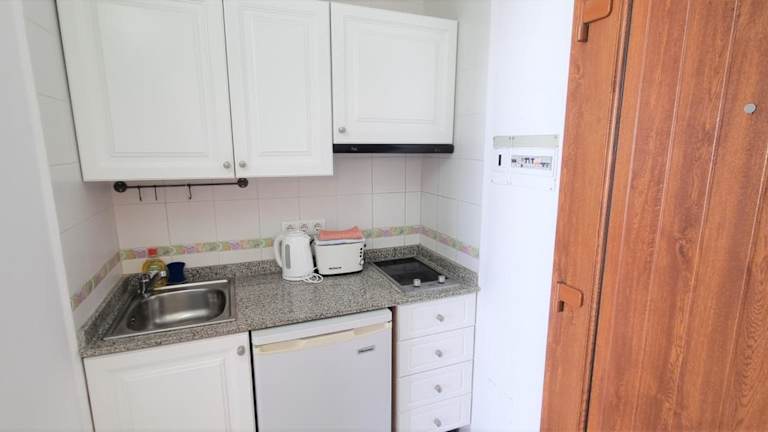 Die geräumigen Studios im Apartamentos Can Marsalet sind mit einer Küchenzeile ausgestattet, die einen Kühlschrank, einen Wasserkocher und eine Kaffeemaschine beinhaltet. Die Einrichtung ist modern, einfach und heimelig.