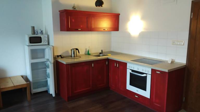 Jede Wohneinheit ist mit einer voll ausgestatteten Küche, einem Kühlschrank, einem Kamin und einem Sitzbereich ausgestattet. Ein Flachbild-TV bietet Unterhaltung. Das eigene Badezimmer ist mit einer Dusche versehen. Weitere Annehmlichkeiten umfassen eine Mikrowelle, eine Herdplatte sowie einen Wasserkocher. Die sauberen und gemütlichen Zimmer bieten eine optimale Bequemlichkeit für alle Gäste.