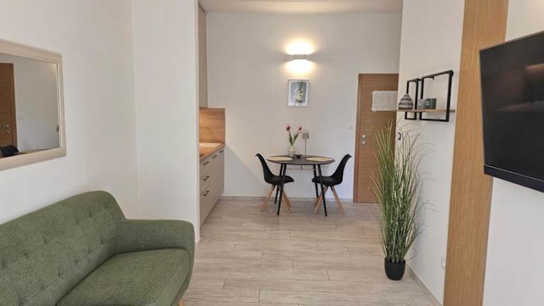 Die Apartments bieten einen Sitzbereich und einen Satelliten Flachbild-TV. Jedes Apartment hat eine voll ausgestattete Küche mit Kühlschrank, Herdplatte, Toaster und Wasserkocher. Ein eigenes Badezimmer mit Dusche und kostenlosen Pflegeprodukten ist ebenfalls vorhanden, und die Gäste können sich über einen schönen Gartenblick von der Terrasse freuen.