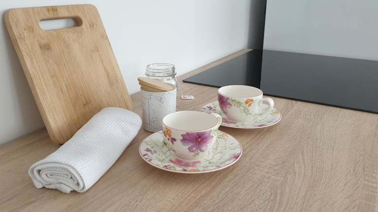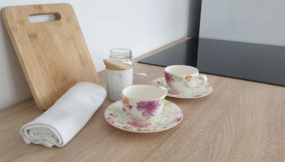 Die Ferienwohnung bietet einen Balkon mit Stadt- und Bergblick, ein Schlafzimmer, ein Wohnzimmer sowie eine gut ausgestattete Küchenzeile mit Kühlschrank und Ofen. Zudem stehen den Gästen ein Flachbild-TV und ein Badezimmer mit Dusche zur Verfügung. Die Unterkunft bietet Bettwäsche und Handtücher an.