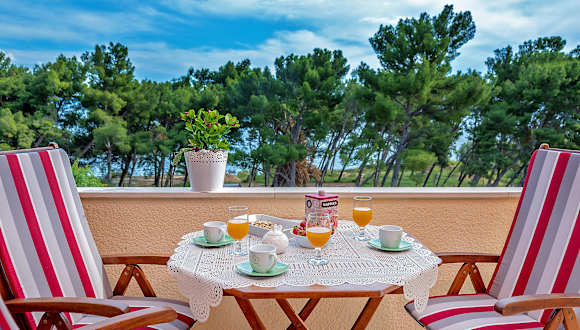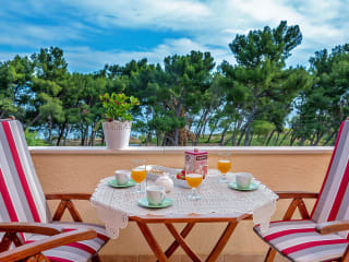 Die Apartments Emi bieten eine einladende Atmosphäre mit einer grosszügigen Sonnenterrasse und einem schönen Meerblick. Die Räumlichkeiten sind ideal für Gäste, die eine unabhängige und ausschweifende Ferienzeit geniessen möchten, und zeichnen sich durch modernen Komfort aus.