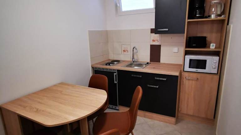 Die Apartments verfügen über eine voll ausgestattete Küchenzeile mit Kühlschrank, Mikrowelle, Herdplatte, Toaster, Kaffeemaschine und Wasserkocher. Grillmöglichkeiten sind ebenfalls vorhanden.