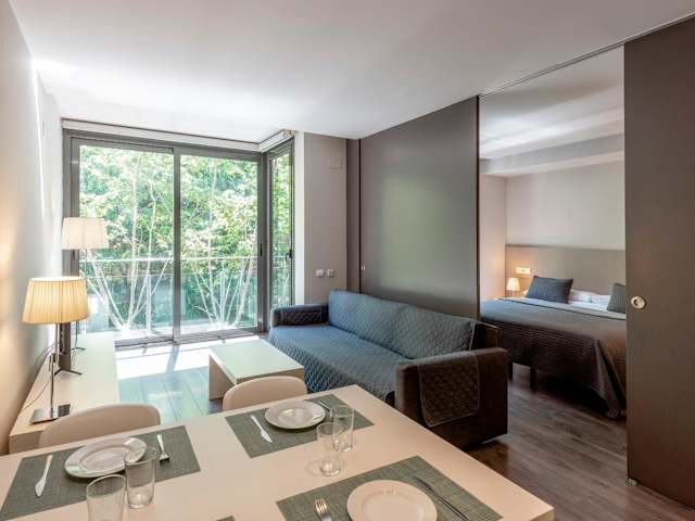 Die Espais Blaus Apartments befinden sich in einer ruhigen Lage im beliebten Stadtteil Gràcia, nur 400 m vom U-Bahnhof Joanic entfernt. Entlang der Umgebung finden sich zahlreiche Geschäfte, Bars und Restaurants, die innerhalb von 5 Gehminuten erreichbar sind. Der Lebensmittelmarkt L'Abaceria Central befindet sich nur 250 m von den Apartments entfernt. Der Prachtboulevard Passeig de Gràcia und Gaudis La Pedrera erreichen Sie in etwa 15 Gehminuten.