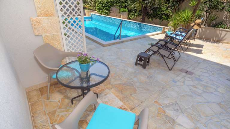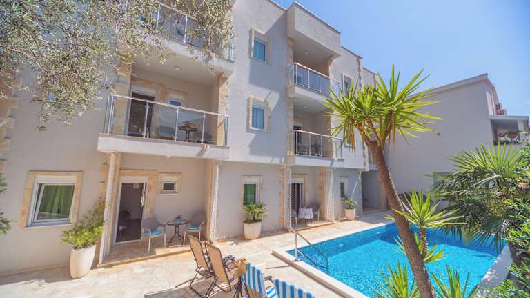 Die Apartments sind modern ausgestattet und bieten ein angenehmes Raumklima durch Klimaanlage und Heizung. Jedes Apartment verfügt über einen Balkon oder eine Terrasse mit Blick auf den Pool. Die Zimmer sind mit einem Queensize-Bett oder einem Sofabett ausgestattet. Ein Kühlschrank, eine Tee-/Kaffeemaschine sowie ein Fernseher mit Satelliten-/Kabelempfang sind ebenfalls vorhanden. Die Badezimmer sind mit einer Dusche und einem Haartrockner ausgestattet. Kleine Details wie Kosmetikartikel, Handtücher und Bettwäsche werden bereitgestellt. Familien- und Nichtraucherzimmer sind verfügbar.