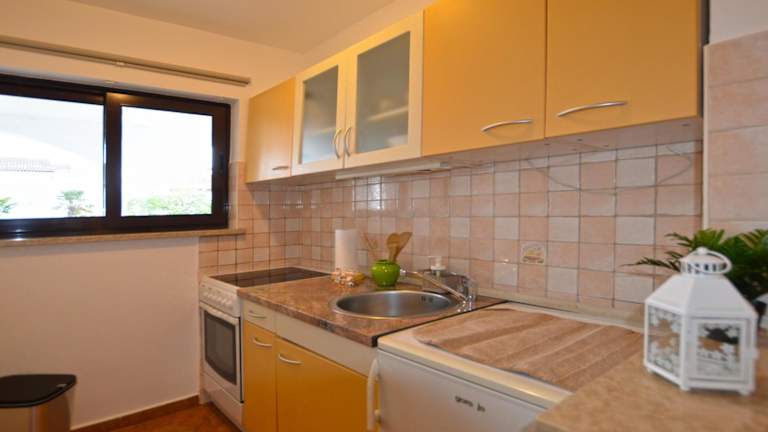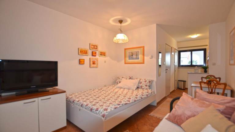 Die Studios im Apartments Greta befinden sich alle im Erdgeschoss und bieten eine komfortable und voll ausgestattete Unterkunft. Jedes Studio verfügt über einen Flachbild-Sat-TV, eine Küchenzeile mit Essbereich und ein eigenes Bad mit Waschmaschine. Genießen Sie die frische Luft und den Gartenblick von Ihrer möblierten Terrasse aus.
