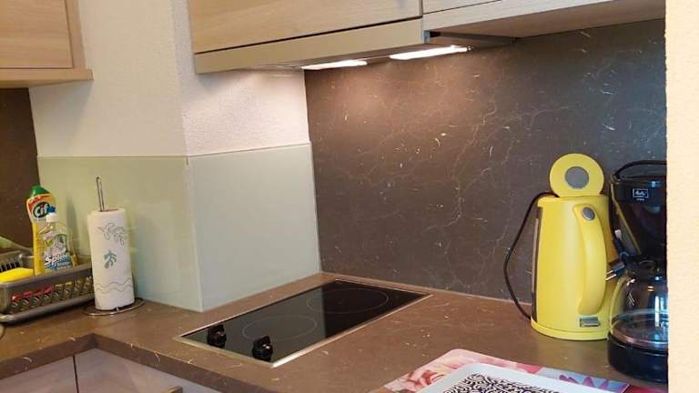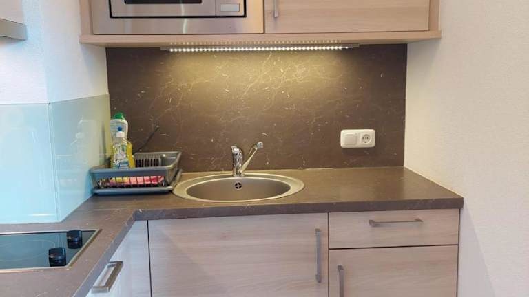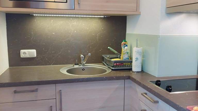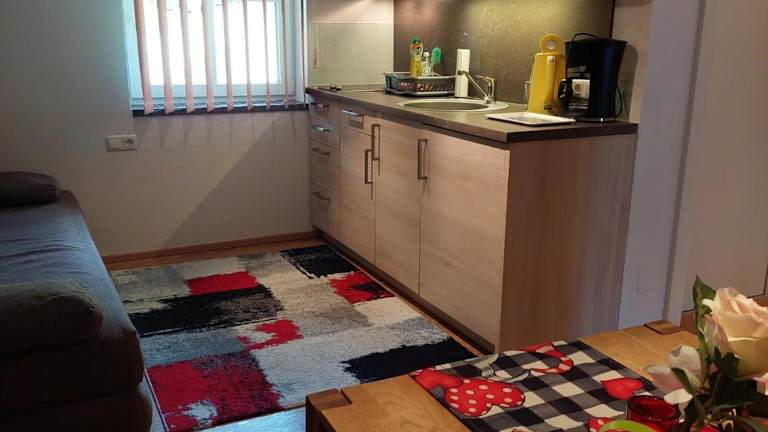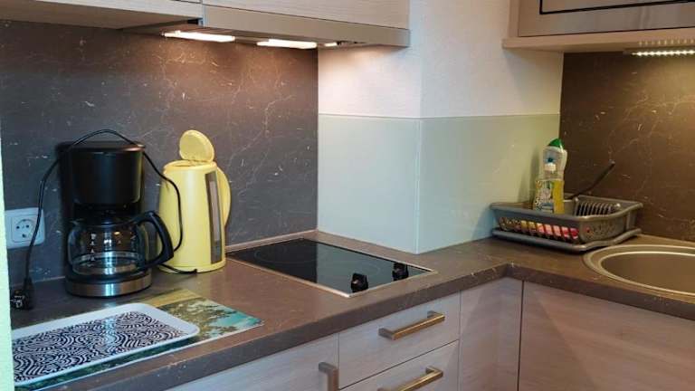 Die Ferienwohnung verfügt über eine Küchenzeile mit Kühlschrank, Mikrowelle, Herdplatte und Kaffeemaschine sowie einen Kabel TV.