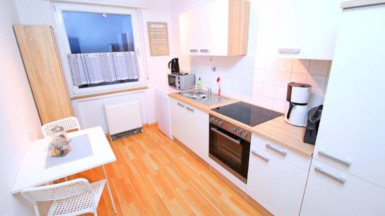 Die Apartments sind mit einer voll ausgestatteten Küche ausgestattet, die Möglichkeiten zur Selbstverpflegung bietet. Diese beinhaltet unter anderem einen Kühlschrank, einen Ofen und eine Mikrowelle sowie eine Herdplatte und einen Toaster. Zusätzlich sind eine Kaffeemaschine und ein Wasserkocher vorhanden, um den Gästen die Zubereitung von Snacks und Getränken zu erleichtern.