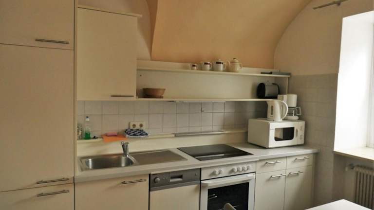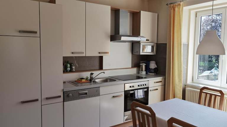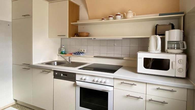 Die Apartments verfügen über eine gut ausgestattete Küche mit Kühlschrank, Geschirrspüler, Ofen und Kaffeemaschine.