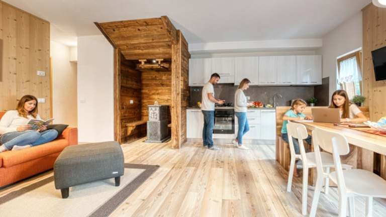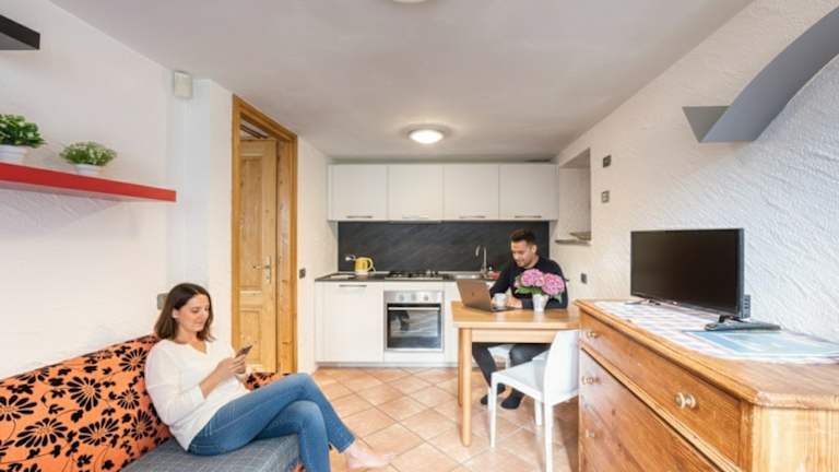 Wir haben 8 Wohnungen: 1 - Es ist eines einfache Erdgeschoss-Bilokal, bestehend aus einer Tageszone mit Kuchenzeile, Bad und Zimmer mit Doppelbett. Eine preiswerte und funktionelle Lösung für alle, die eine kurzzeitige Übernachtung in Macugnaga benötigen. 2 - Es ist eine zwei Etagen Wohnung, sehr helle, bestehend aus einem Wohnzimmer mit einer ausgestatteten Kuchenzeile; Bad mit kleinem Dusch; Innentreppe zum Schlafzimmer mit einem Doppelbett (Da kann man gemütlich eine romantische und faszinierende Aussicht auf den Monte Rosa geniessen) und ein Einzelbett geniessen. 3 - Es ist auf zwei Etagen aufgebaut, hell und besteht aus einem grossen Wohnzimmer (mit Bettsofa), einer ausgestattet Kuchenzeile und einem grossen Bad mit komplett erneuerter Dusche. Im Wohnzimmer finden wir ein kleines Schmuckstück: ein antiker Steinofen aus den frühen 19. Jahrhundert mit den Initialen und dem Familienwappen. Von der Innertreppe aus gelangen Sie in die obere Etage, wo sich das gross Doppelschlafzimmer, welches sich auf dem Grün öffnet, und daneben das kleinere Zimmer mit einem schönen Etagenbett aus Holz befindet. Vom Schlafzimmer aus gelangen Sie zu einem kleinen Balkon, ausgestattet mit Tisch und zwei Stühlen. 4 - Sie ist auf zwei Etagen aufgebaut, hell und besteht aus einem grosszügigen Wohnzimmer mit Bettsofa, überzogen mit Holz, das dem Raum eine warme, typische Bergatmosphäre verleiht. Neben dem Wohnzimmer befindet sich die kleine Kuchenzeile mit Ausstattung und ein gemütliches Bad mit komplett erneuerter Dusche. Von der Holzinnenleiter aus gelangen Sie in das obere Stockwerk, wo Sie das grosszügige Einzelbett und Doppelbett Zimmer und das kleinere Kinderzimmer mit einem schönen Etagenbett aus Holz finden. 5 - Sie besteht aus einem grossen Wohnzimmer mit Bettsofa und einem grossen Tisch aus Massivholz und moderner Küche ausststtung. Im Wohnzimmer finden wir auch ein kleines Schmuckstück: ein Steinofen (Stube), der typisch für die Walser-Kultur ist und an kalten Wintertagen zum Sitzen und Wärmen geeignet ist. Die Wohnung verfügt über zwei grosse Doppelzimmer mir Doppelbett und ein Bad mit Dusche. Zudem hat die Wohnung einen Privathof vor der Eingangstür, mit Sofa und Sesseln, um sich zu entspannen und die wunderschöne Bergen sowie einen gemeinsamen Garten mit anderen Wohnungen zu geniessen. 6 - Es ist eine gemütliche, leuchtende Wohnung mit Holzböden, die aus einem hübschen Wohnzimmer mit einem Tisch aus Massivholz und moderner Küche Ausstattung besteht. Im Wohnzimmer finden wir auch ein ein Steinofen (Stube), der typisch für die Walser-Kultur ist und an kalten Wintertagen zum Sitzen und Wärmen geeignet ist. Die Wohnung verfügt über ein Doppelzimmer und ein Zimmer mit zwei Einzelbetten im Dachgeschoss, die über eine Leiter erreichbar sind. Die Wohnung hat ein Bad mit Dusche. 7 - Die Maisonette-Wohnung besteht aus drei Räume und Dienstleistungen. Es ist eine gemütliche, leuchtende Wohnung mit Holzböden, die aus einem hübschen Wohnzimmer mit einem Tisch aus Massivholz und moderner Küche Ausstattung besteht. Im Wohnzimmer finden wir auch ein Steinofen (Stube), der typisch für die Walser-Kultur ist und an kalten Wintertagen zum Sitzen und Wärmen geeignet ist. Die Wohnung verfügt im oberen Stockwerk über ein Doppelschlafzimmer und eine Zimmer mit Einzelbett. Die Wohnung hat ein Bad mit Dusche im Erdgeschoss und ein Service-Bad in den zwei Schlafzimmern im Dachgeschoss. 8 - Ein ganzes Haus steht unseren Gästen zur Verfügung: ein Holzgebäude im Walser-Stil der Berge, das man in zwei Wohnungen unterteilen kann. Die Hauptwohnung, die von einer komfortablen Aussentreppe aus Holz aus betreten wird, lädt Gäste zu einem grossen Tisch und einer modernen, funktionalen Küche (ausgestattet mit Tellerwäscher) ein. Neben dem grossen Sofa, den Sesseln und dem Kamin, der das Bergfeeling erwärmt. Von der Innentreppe aus gelangen Sie in das obere Stockwerk: das grosszügige, gemütliche und helle Doppelzimmer, das Etagenbett-Zimmer und ein weiteres Zimmer mit zwei Betten, beide hell und gemütlich. Badezimmer mit Badewanne. Vom Wohnzimmer über eine Innentreppe gelangen Sie in die zweite kleine Wohnung im Erdgeschoss, eine Kochecke, ein Schlafzimmer mit drei Betten und ein Bad mit Dusche.