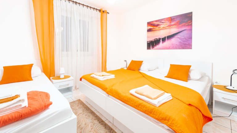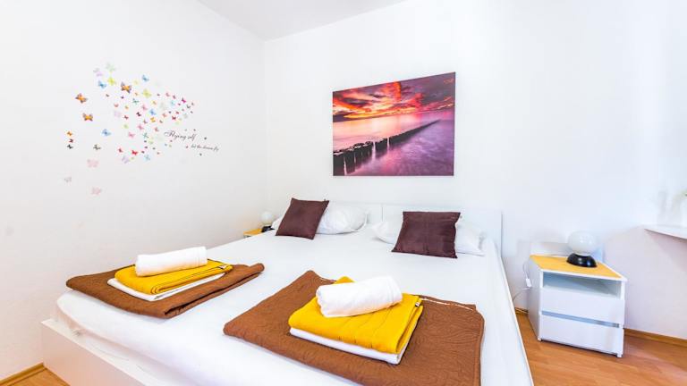 Die Apartments Jadran bieten eine heimelige Unterkunft mit kostenlosem Wifi und Klimaanlage. Die Gäste haben Zugang zu einem Garten und können auf der Terrasse mit Stadtblick entspannen. Ein kostenpflichtiger Flughafentransfer zum 62 km entfernten Flughafen Zadar wird ebenfalls angeboten.