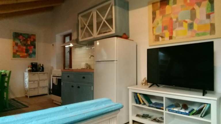 In jeder Wohneinheit gibt es eine voll ausgestattete Küche mit einem Esstisch, einem Kühlschrank, einer Herdplatte, einem Toaster und einem Wasserkocher.