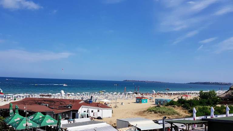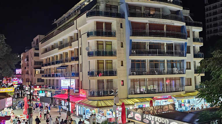 Die Apartments Kaya befinden sich an der Uferpromenade im Zentrum von Sunny Beach, nur 20 Meter vom Strand entfernt. In der Nähe des Gebäudes finden sich zahlreiche Bars, Nachtclubs und Restaurants, die bis in die frühen Morgenstunden geöffnet sind. Die Altstadt von Nessebar liegt lediglich 6 km entfernt und ist gut erreichbar.