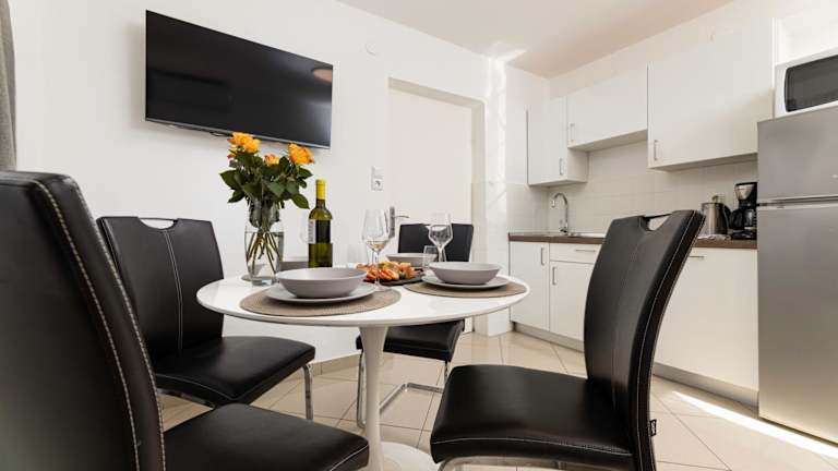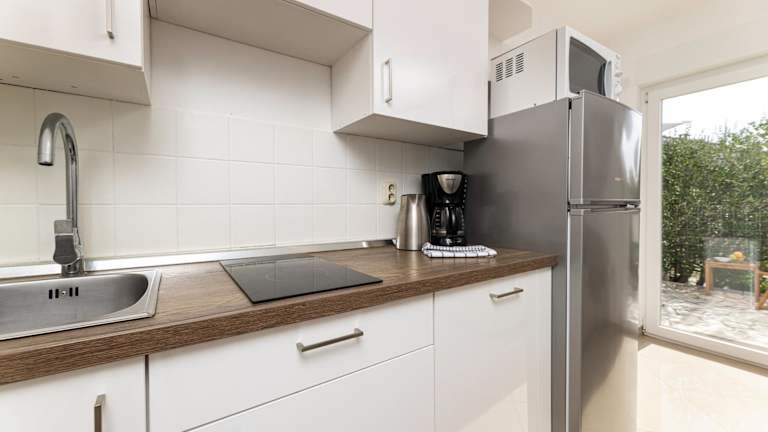 Die Apartments sind mit einer gut ausgestatteten Küche versehen, die einen Kühlschrank, eine Herdplatte, einen Toaster und eine Kaffeemaschine beinhaltet. Zudem haben die Gäste die Möglichkeit, den Grill im Freien zu nutzen.