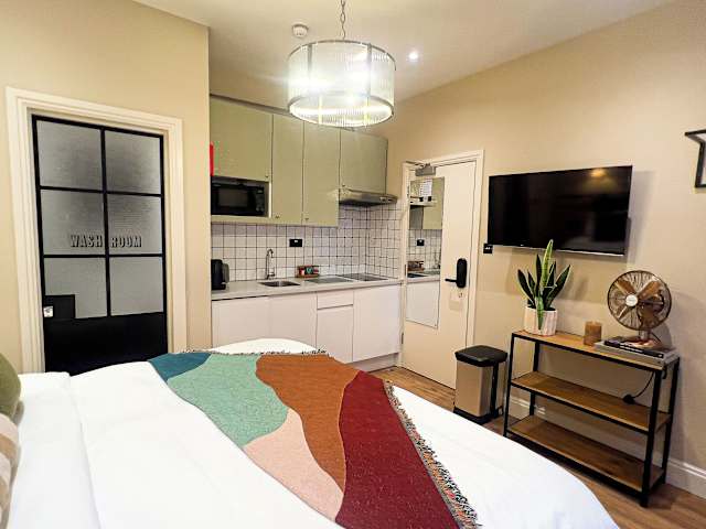Das Apartment ist sehr stylisch eingerichtet. Die Londoner Innenstadt ist von hier aus sehr gut mit der U-Bahn zu erreichen.