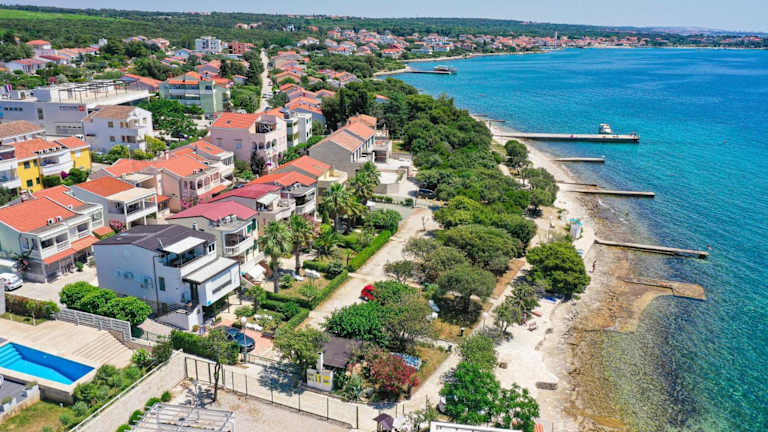 Die Apartments Malic befinden sich im Ferienort Punta Skala, nur 50 Meter vom Strand entfernt. Das idyllische Zentrum von Petrčane ist 900 Meter entfernt, während die UNESCO-Weltkulturerbe Stadt Zadar in 8 km Distanz zu erreichen ist. Die Bushaltestelle sowie die Docks, von denen Boote zu den Naturparks Telašćica und Kornaten ablegen, befinden sich ebenfalls 900 Meter entfernt. Der Flughafen Zadar ist 18 km bzw. 23 km von den Apartments entfernt.