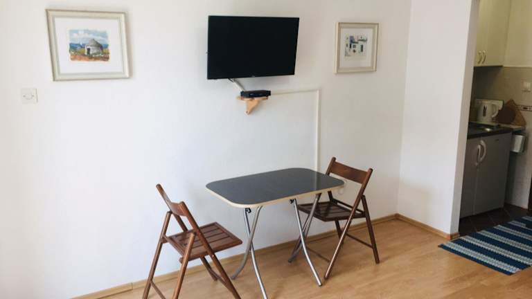 Die Ferienwohnung besteht aus einem Schlafzimmer, einer Küche mit Essbereich und einem Badezimmer mit Dusche. Zu den Annehmlichkeiten gehören Flachbild-TV, Balkon, Handtücher und Bettwäsche. Zu den weiteren Bequemlichkeiten gehören Heizung, Klimaanlage und Bügelservice. Ein Zustellbett und ein Babybett stehen auf Anfrage zur Verfügung.