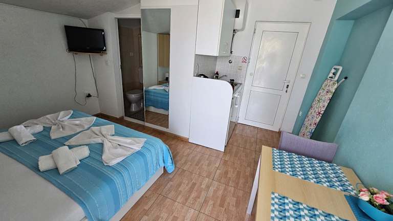 Die Apartments Mirjana bieten Übernachtungsmöglichkeiten mit kostenlosem Wifi, Klimaanlage sowie Zugang zu einem heimeligen Garten mit einer Terrasse. Die Unterkunft verfügt über eine Veranda mit Bergblick, einen Sitzbereich und einen Kabel Flachbild-TV. Die Gäste haben Zugang zu voll ausgestatteten Küchen und eigenen Badezimmern mit kostenlosen Pflegeprodukten. Zudem gibt es einen Wasserpark in der Nähe.
