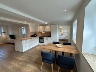 In den Apartments steht in der voll ausgestatteten Küche ein Kühlschrank, ein Geschirrspüler, ein Ofen, eine Kaffeemaschine sowie ein Wasserkocher zur Verfügung. Ein Esstisch ermöglicht geselliges Beisammensein während der Mahlzeiten.