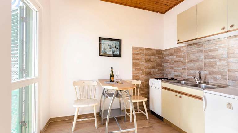 Die Wohneinheiten sind mit einer Küchenzeile ausgestattet, die über einen Kühlschrank, eine Mikrowelle sowie eine Herdplatte verfügt. Zudem stehen eine Kaffeemaschine und ein Wasserkocher zur Verfügung, was die Zubereitung von kleinen Mahlzeiten und Snacks während des Aufenthalts ermöglicht.