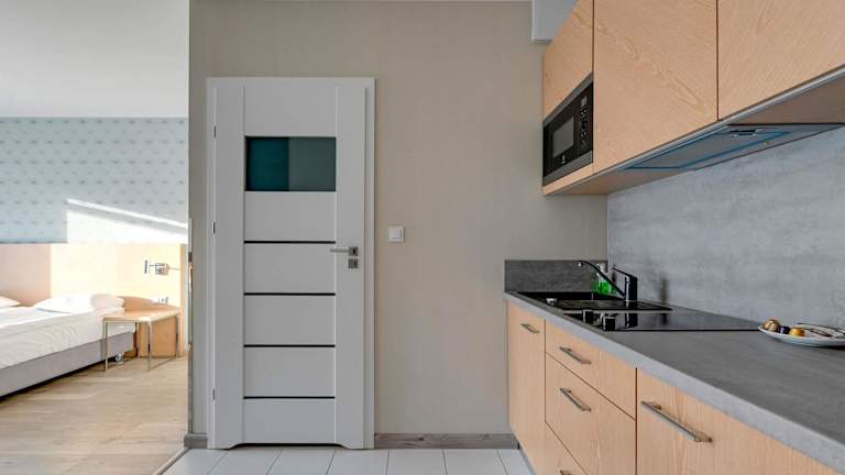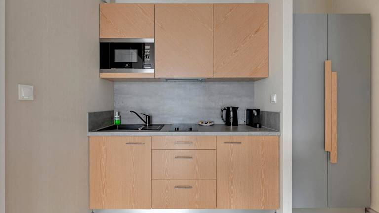 Die Wohneinheiten verfügen über eine voll ausgestattete Küchenzeile, die mit einem Kühlschrank, einer Mikrowelle, Herdplatte, Wasserkocher und einer Kaffeemaschine ausgestattet ist. Ein Essbereich ist ebenfalls vorhanden.