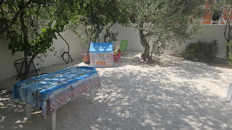 Verbringen Sie erholsame Urlaubstage in den Olive Garden Apartments in Poljica. In ruhiger Lage und nur wenige Gehminuten von der Adria entfernt, können Sie hier eine entspannte Zeit inmitten eines malerischen Gartens mit Olivenbäumen und einem Spielplatz genießen. Die voll ausgestatteten Apartments bieten Ihnen alles, was Sie für einen komfortablen Aufenthalt benötigen. Ein Highlight ist die große Terrasse mit Grillmöglichkeiten, auf der Sie gemütliche Stunden verbringen können. Lassen Sie sich von Ihrem Gastgeber mit traditionellen kroatischen Spezialitäten verwöhnen und entdecken Sie die Umgebung auf Bootsfahrten, die direkt von der Unterkunft aus angeboten werden.