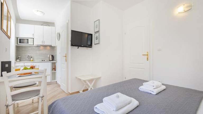 Die Apartments sind kompakt, modern eingerichtet und in hellen Farben gehalten. Sie verfügen über kostenloses Wifi und einen LCD-Kabel-TV. Bettwäsche, Handtücher und Wäsche werden nach Richtlinien der örtlichen Behörden gewaschen.