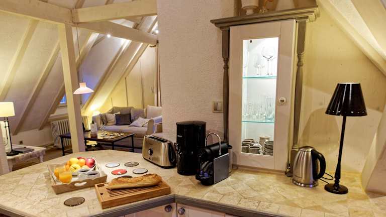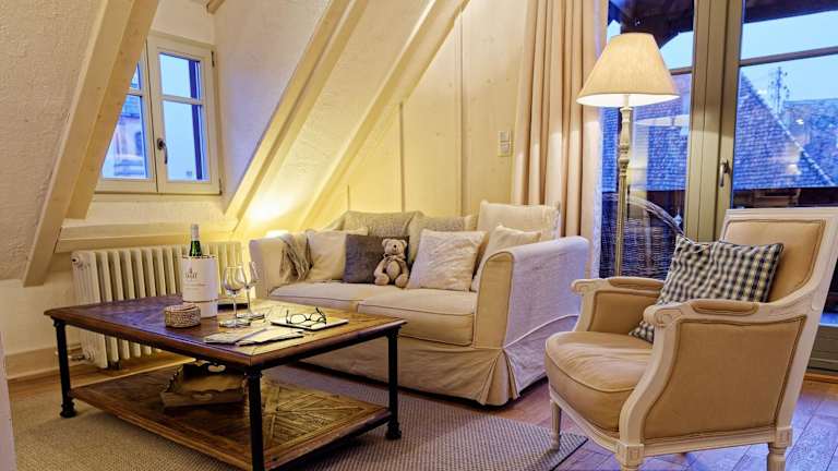 Die Apartments liegen im historischen Dorf Riquewihr, umgeben von denkmalgeschützten elsässischen Fachwerkhäusern. Öffentliche Parkiermöglichkeiten sind in der Nähe vorhanden. Die Anbindung an den Bahnhof Colmar ist gegeben, der 15 km entfernt ist. Die deutsche Grenze befindet sich 30 km entfernt. Der EuroAirport Basel sowie die Stadt Strassburg sind in einer Autostunde erreichbar.