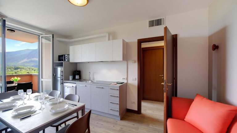 Die Ferienwohnungen verfügen über zwei Schlafzimmer und sind ausgestattet mit einem Wohnzimmer, einem TV mit Satellitenkanälen sowie einer gut ausgestatteten Küche mit Kühlschrank und Geschirrspüler. Zudem bieten die Wohnungen ein Badezimmer mit Dusche. Die Bereitstellung eines Kinderbettes ist auf Anfrage möglich.