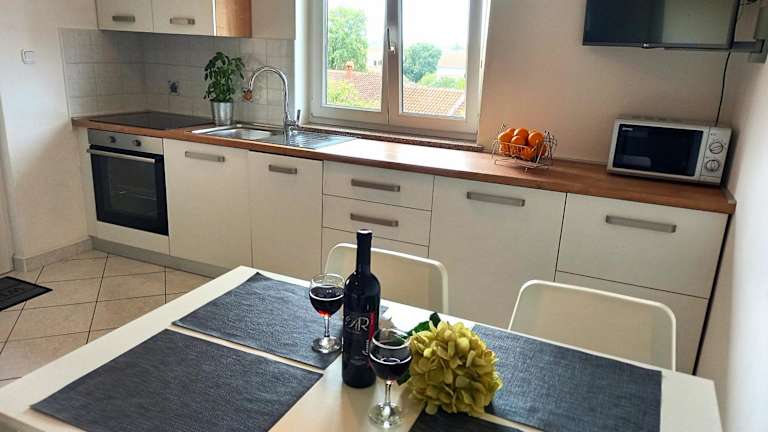 Das Studios Ritoša liegt 3 km vom Zentrum von Poreč entfernt und bietet eine ruhige Lage in der Nähe des Strandes. In der Umgebung finden Sie verschiedene Geschäfte, eine Café-Bar und ein Restaurant, um Ihren täglichen Bedarf zu decken. Der nächste Gemüse- und Fischmarkt befindet sich im Zentrum von Poreč. Sportliebhaber können Tennis und Minigolf in der Nähe spielen, während Naturliebhaber den Aquapark und die Baradine-Höhle erkunden können. Der Busbahnhof von Poreč ist leicht zu erreichen und der Flughafen Pula liegt nur 50 km entfernt.