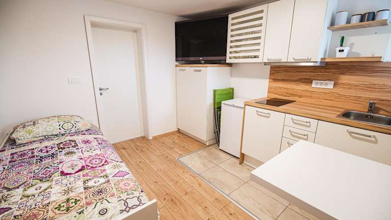 Apartments Rozalija bietet Selbstversorger-Unterkünfte, die durch Parkettböden, eine ausgestattete Küchenzeile mit Kühlschrank und Mikrowelle sowie ein eigenes Badezimmer mit Dusche gekennzeichnet sind. Die Unterkunft hat eine Terrasse und ist für Nichtraucher ausgelegt. Kostenfreies Wifi und Parkiermöglichkeiten sind ebenfalls vorhanden.